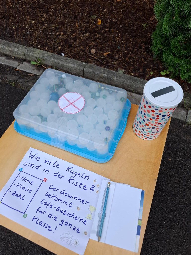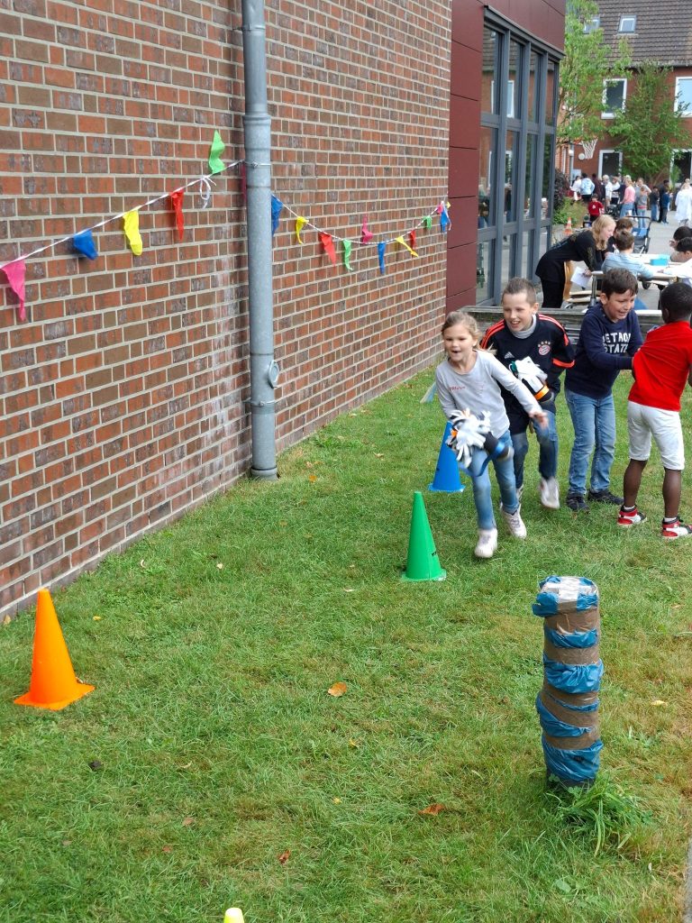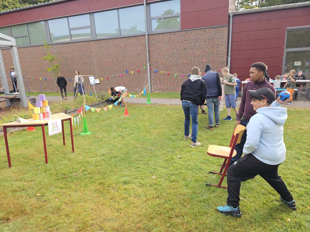 Schatzsuche, Jakkolo, Boule, Erbsen hauen, Bonbon-Schätzglas und natürlich Bewegungsspiele wie Hobby Horsing gehörten unter anderem zum Angebot. Für das Catering waren Klassen der Sekundarstufe 1 zuständig.