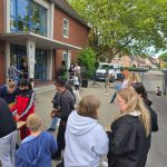 Das gibt gerade den neuen Schülern und Kollegen, aber natürlich auch allen anderen die Gelegenheit, fast die gesamte Schulgemeinschaft gemeinsam zu erleben. Unsere guten Beziehungen nach oben sorgten dafür, dass die dicken Pfützen vom Vorabend alle verschwunden waren und wir ziemlich tolles Spätsommerwetter hatten. Alle Schüler vom Standort Osseweg, die beiden Koopklassen der Ludgerischule sowie eine Klasse der Carl-Goerdeler-Schule waren wieder mit dabei.