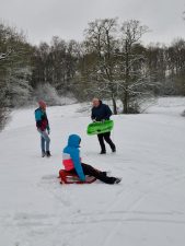 Neben ein paar unterrichtsfreien Tagen, die dem einen oder anderen Schüler vielleicht ganz gut gefallen haben, nutzte die Klasse 7a das tolle Winterwetter für zwei kleine Ausflüge. Anfang Januar lag ziemlich viel Schnee, und so wurden alle verfügbaren Schlitten und andere Untersätze zum Julianenpark gezogen, um dort nach der Mittagspause den Rodelhügel zu testen.