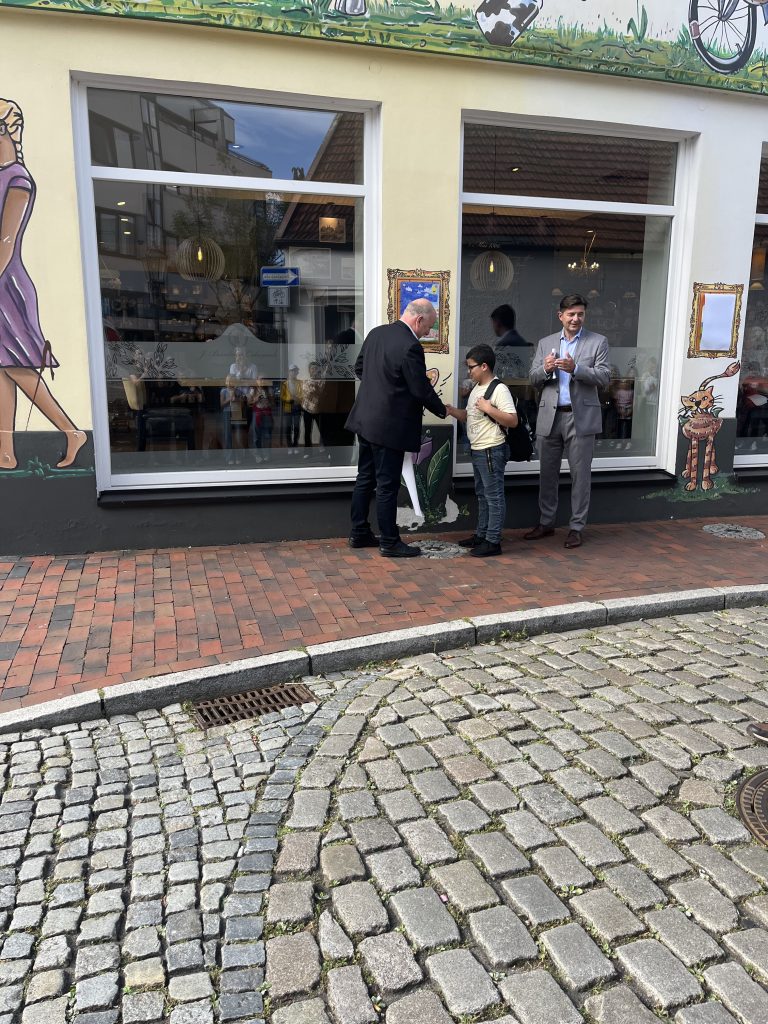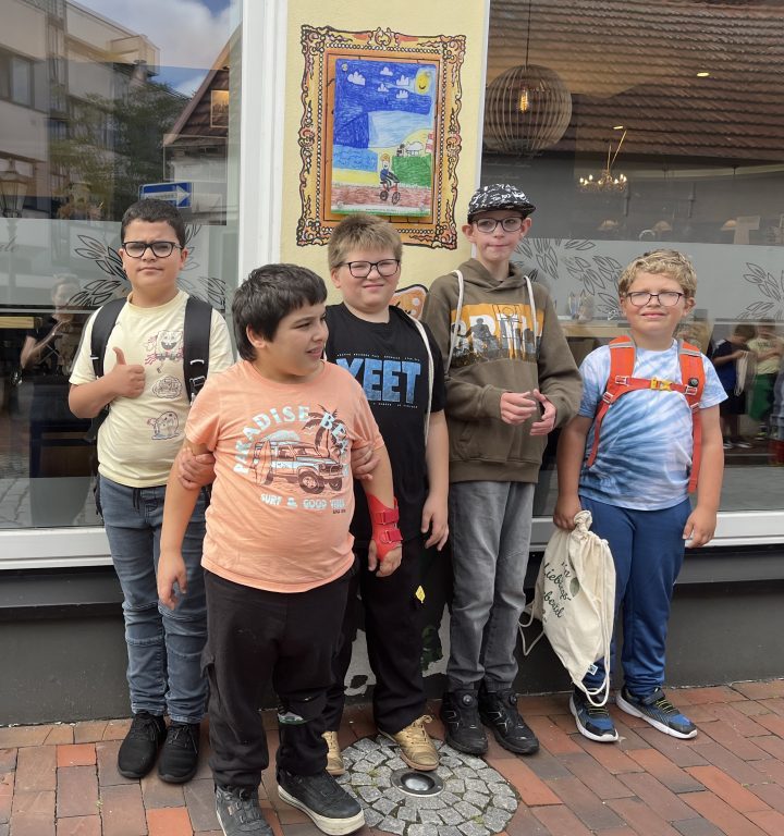 Die Klasse 4b hat im letzten Schuljahr am Malwettbewerb der J. Bünting Coloniale teilgenommen. Am 02.09.2025 fand eine feierliche Enthüllung der Siegerbilder durch den Bürgermeister der Stadt Leer statt.
