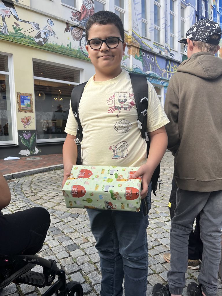Der strahlende Gewinner unserer Schule heißt Abd Alaziz und wurde durch einen herzlichen Applaus der anwesenden Schüler und Lehrer sowie einem Geschenk belohnt.