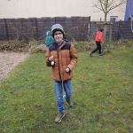 die Suche nach einem Osterhasen gemacht, der eine besondere Überraschung für die Klasse dabei hatte. Zudem wurden an zwei Stationen österliche Spiele wie Eierlauf und Eierrollen gespielt.