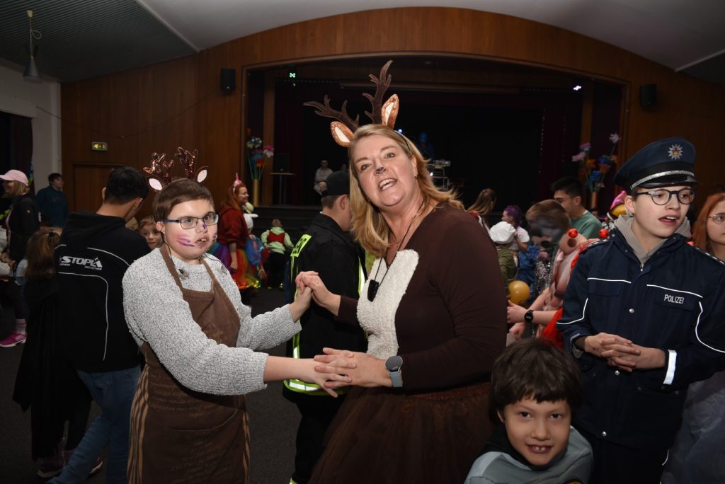Wie immer begannen die Kleinsten mit einer Polonäse, die alle Feierwütigen abholte und in einer immer länger werdenden Schlange bis zur Aula führte.Dort erwartete die Karnevalisten in der geschmückten Aula ein bunt gemischtes Musikprogramm, bei dem für jeden etwas dabei war.