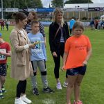 dem Maskottchen des Sportttages war für viele interessant. An der kostenlosen Verpflegungsstation, wo es leckere Brötchen, Obst und Getränke gab, war ebenfalls viel Betrieb. Der Höhepunkt war dann die große Siegerehrung, bei der jeder Teilnehmer eine Goldmedaille um den Hals gehängt bekam.
