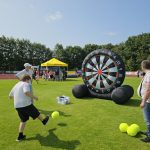 Für die jüngeren Schüler war auf dem Rasen wieder ein abwechslungsreiches Spielfest aufgebaut. Neben der immer umlagerten Hüpfburg gab es z.B. eine riesengroße Fußballdartsscheibe, eine Minigolfbahn, Riesenseifenblasen und vieles mehr.